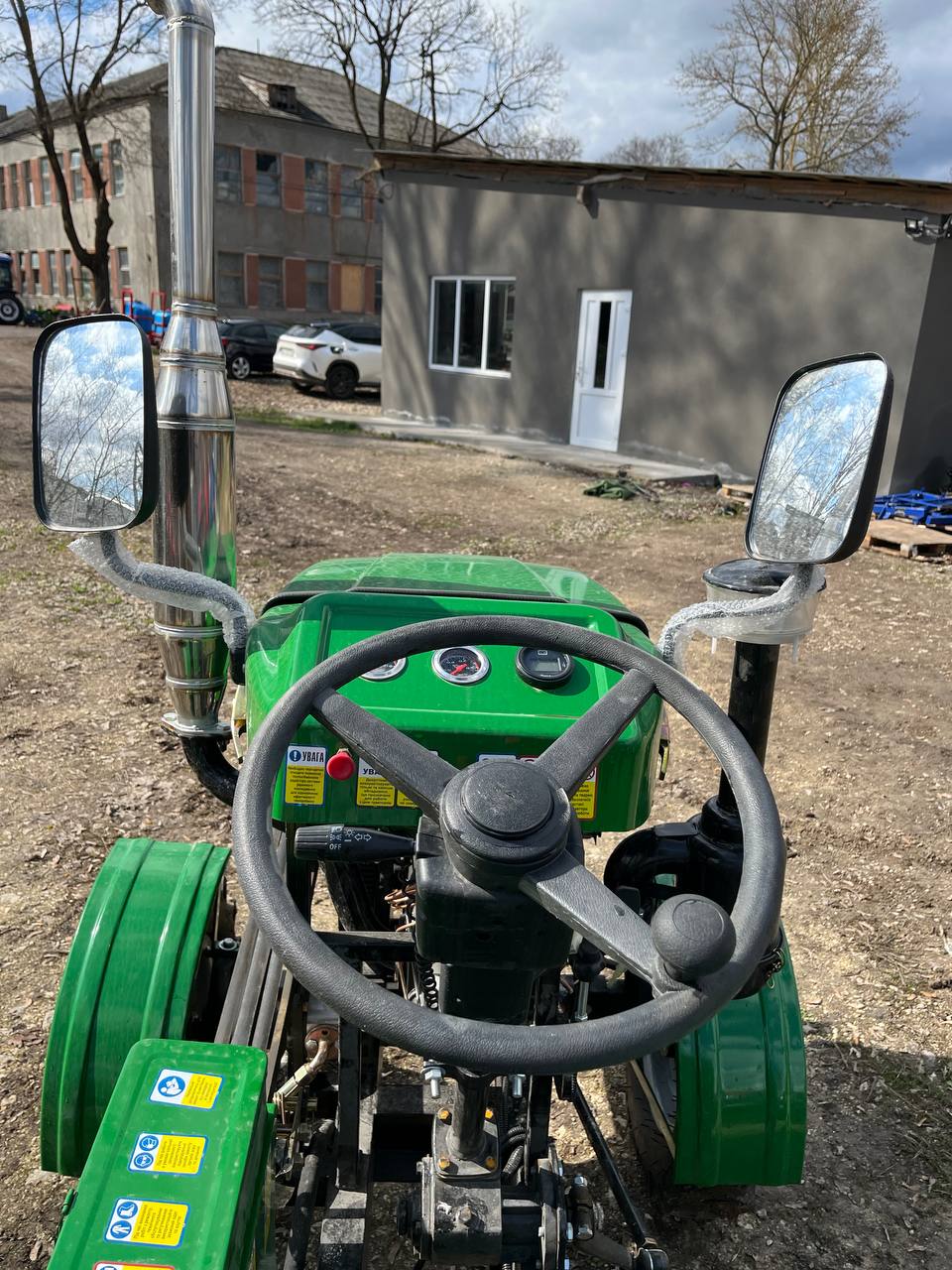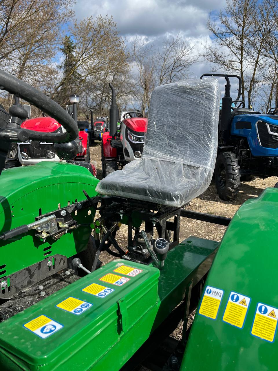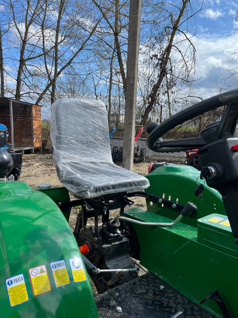 Трактор оснащений відкидним сидінням із пружиною, індикаторною панеллю, генератором на 250 Вт та базовим освітленням для безпечної експлуатації у вечірній час. До комплекту входять металеві крила та зручний ящик для інструментів.
