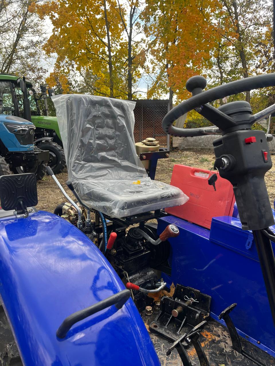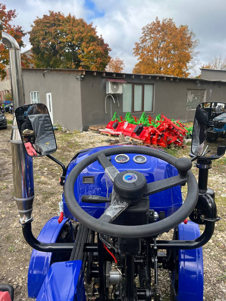 В комплекті до трактора йде: 2-корпусний плуг, фреза 1,4 м, передня та задня гідравліка, передні та задні противаги і звісно 3-точкова навіска!