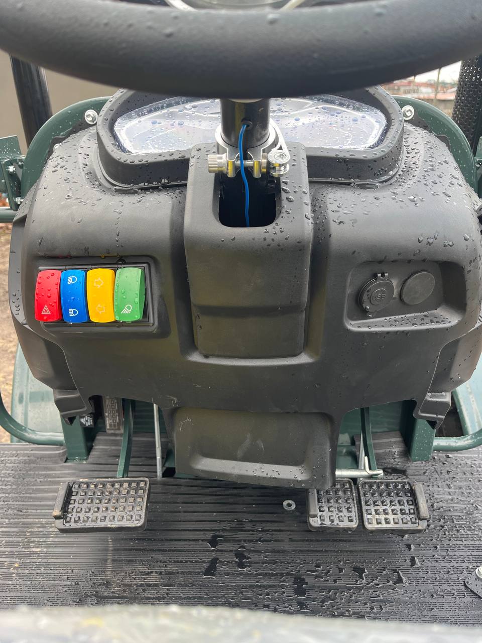 HORST G244U пропонує продуманий комфорт для оператора, навіть попри відсутність кабіни. Сидіння з амортизацією та регулюванням, рівна підлога та важіль стоянкового гальма автомобільного типу роблять навіть тривалу роботу менш виснажливою. Цифрова панель приладів чітко показує ключові параметри, такі як швидкість, оберти, рівень пального. Запобіжники з індикаторами та USB-роз’єм додають сучасності, адже можна заряджати телефон прямо в полі. Великий ящик для інструментів вміщує все необхідне, а вимкнення двигуна ключем із маслянками полегшує догляд. Фари, покажчики поворотів, дзеркала заднього виду та стоп-сигнали забезпечують безпеку в темну пору доби.