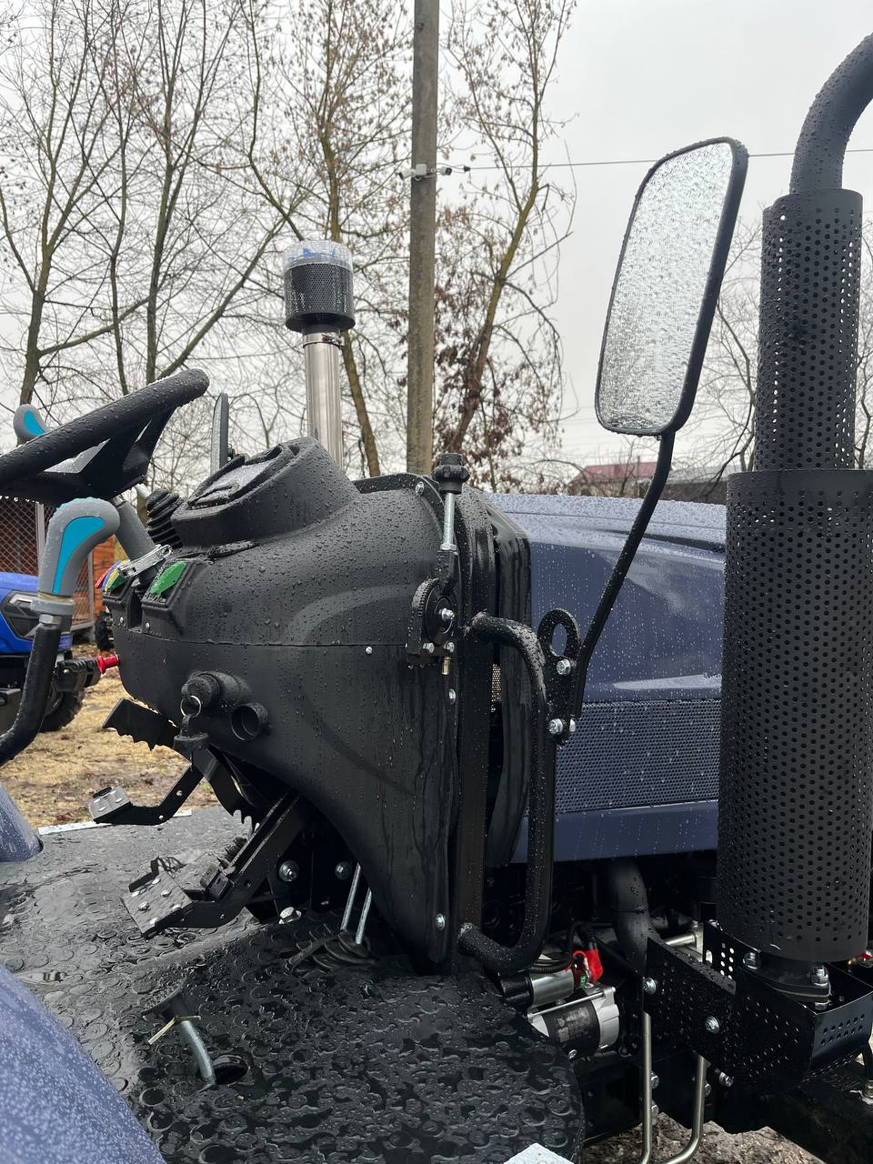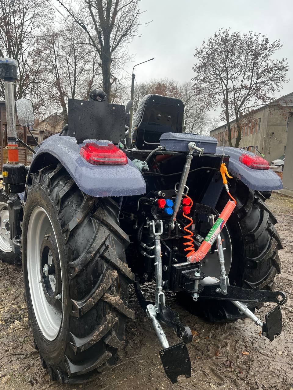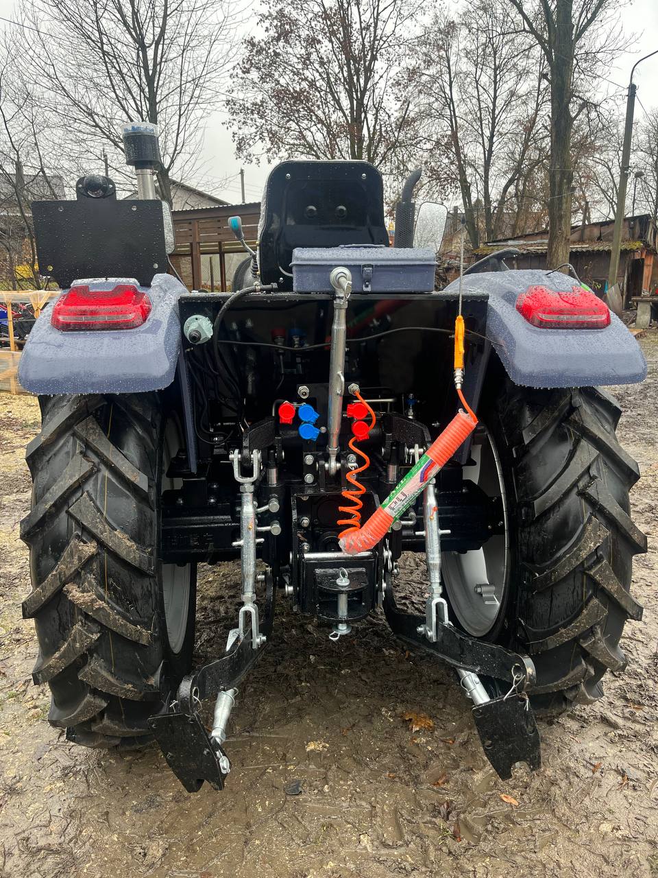 Механічна шестерні трансмісія з формулою (4х2) + (4х2) пропонує гнучкий вибір швидкостей, що дозволяють підібрати оптимальну, виходячи з поставлених завдань. Дводискове зчеплення забезпечує плавне перемикання без ривків. Гідрооб'ємне кермо з окремим насосом і масляним баком робить управління комфортним навіть на нерівних ділянках. Колісна формула 4×4 разом із блокуванням диференціала заднього моста гарантує відмінну прохідність навіть на болотистих або горбистих ґрунтах. Задні барабанні гальма з роздільними педалями та синхронізацією забезпечують точне гальмування, що особливо важливо під час виконання маневрів.