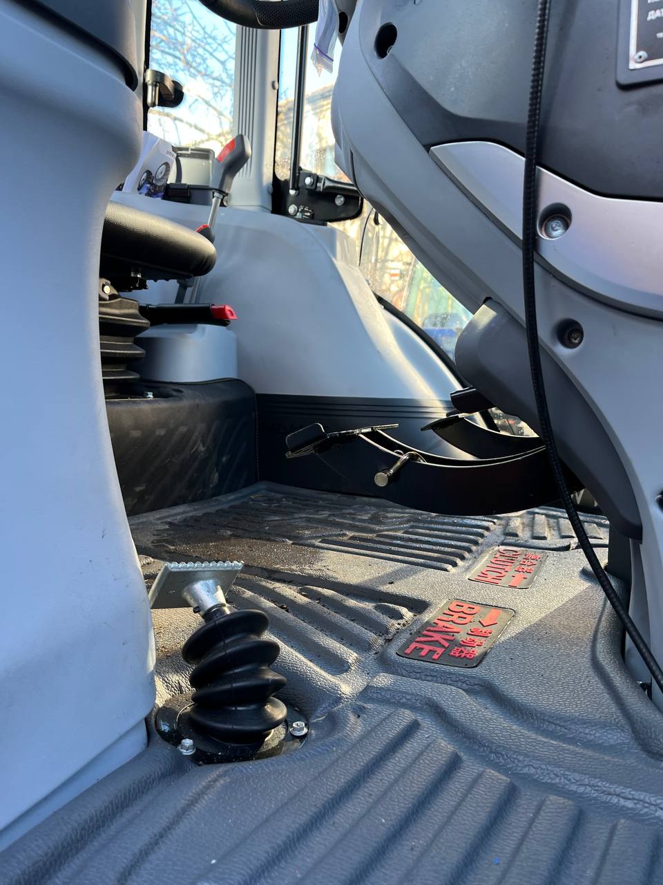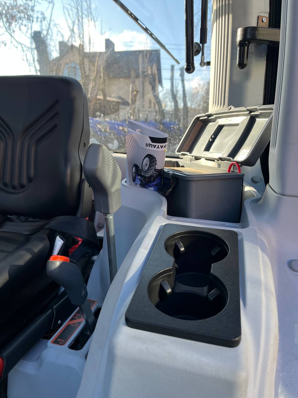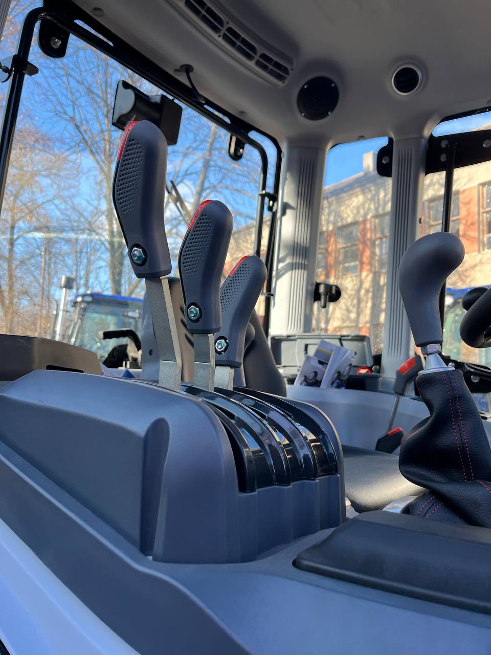 За склом кабіни — опалення, кондиціонер, комфортне сидіння з амортизатором і підлокітниками. Панель приладів — цифрова, з усіма необхідними індикаторами. Є електророзетка для причепа, повний набір світлотехніки, дзеркала та сигналізація.