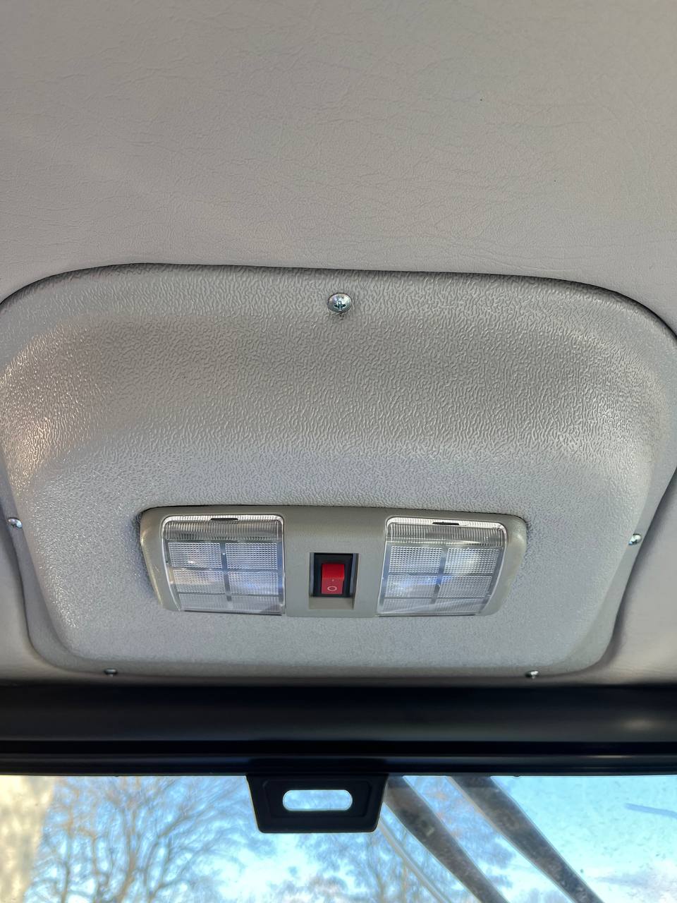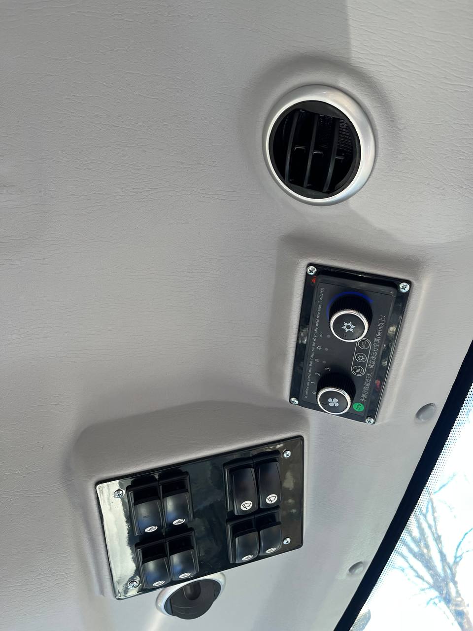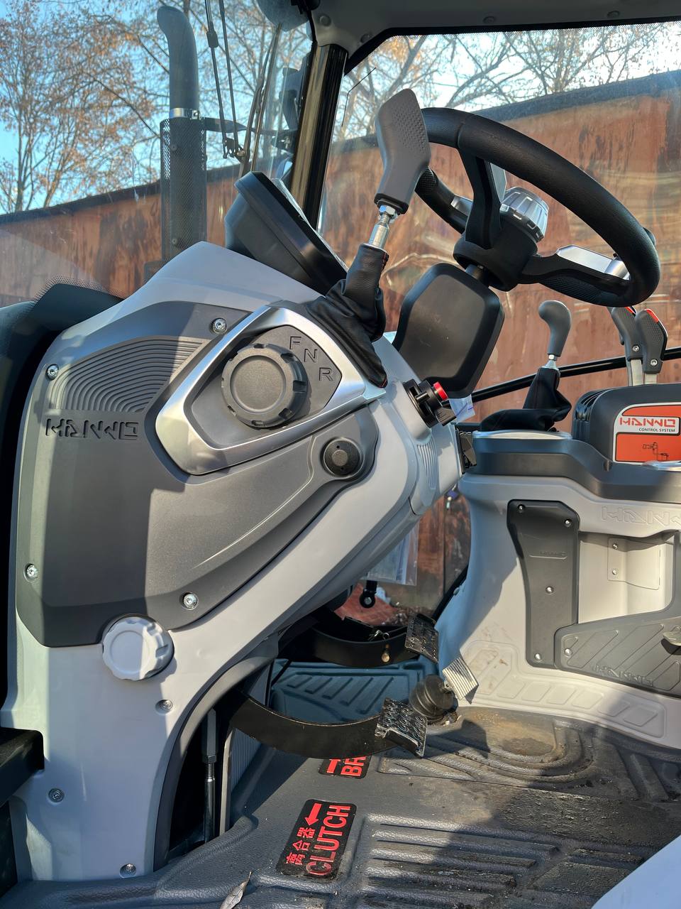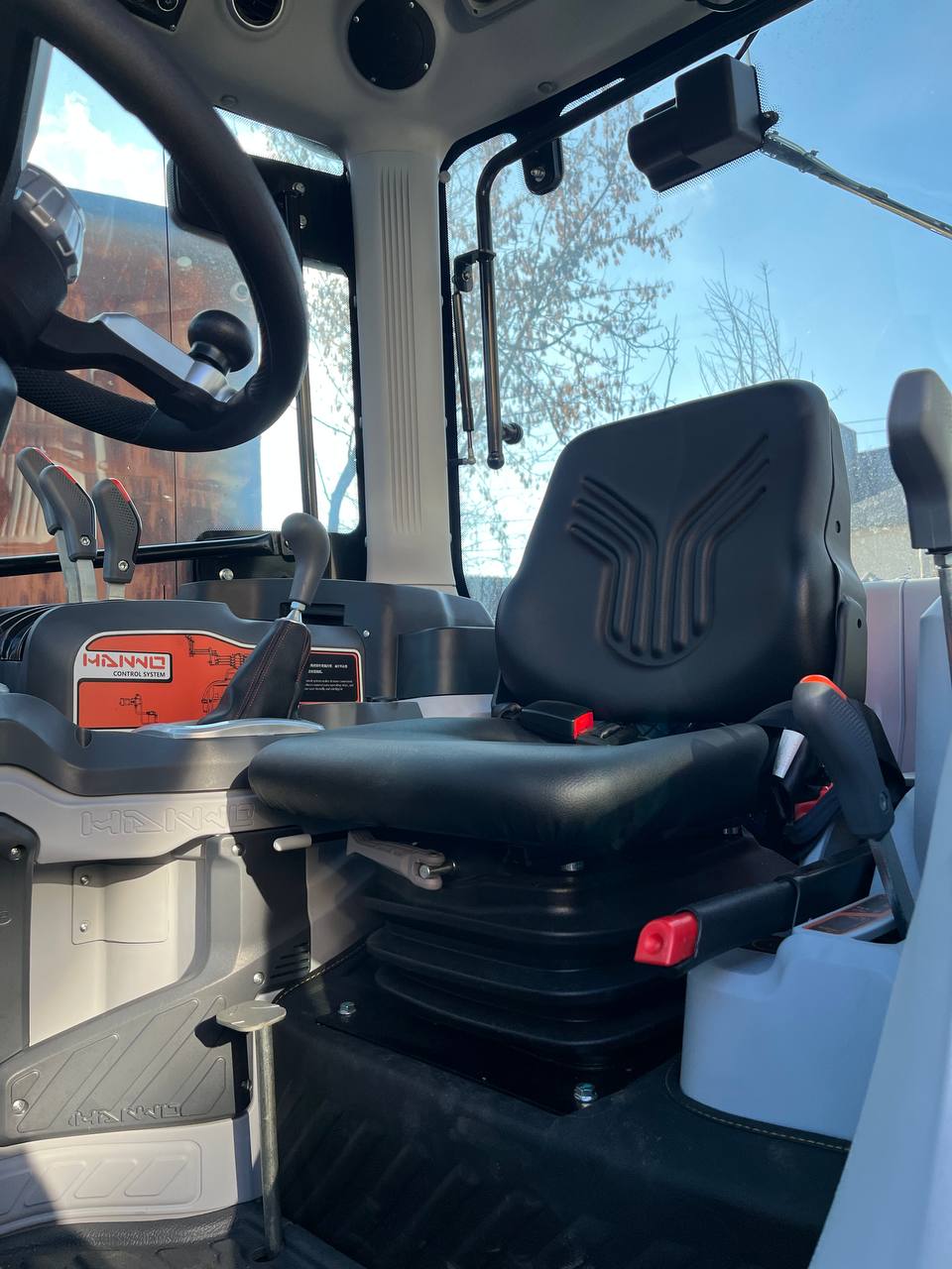За склом кабіни — опалення, кондиціонер, комфортне сидіння з амортизатором і підлокітниками. Панель приладів — цифрова, з усіма необхідними індикаторами. Є електророзетка для причепа, повний набір світлотехніки, дзеркала та сигналізація.